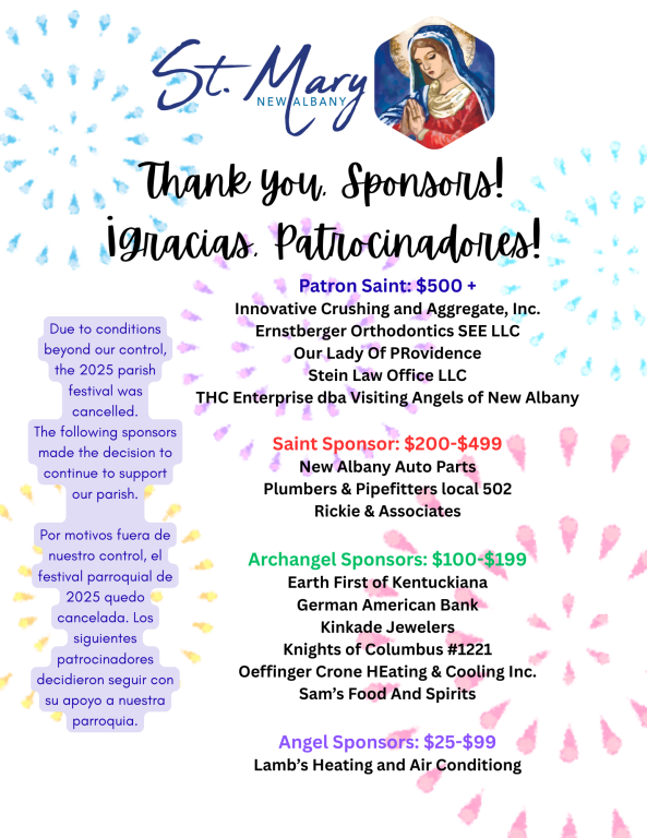 Thursday 8:15 am & 7 pm (Spanish Mass) cancelled until further notice